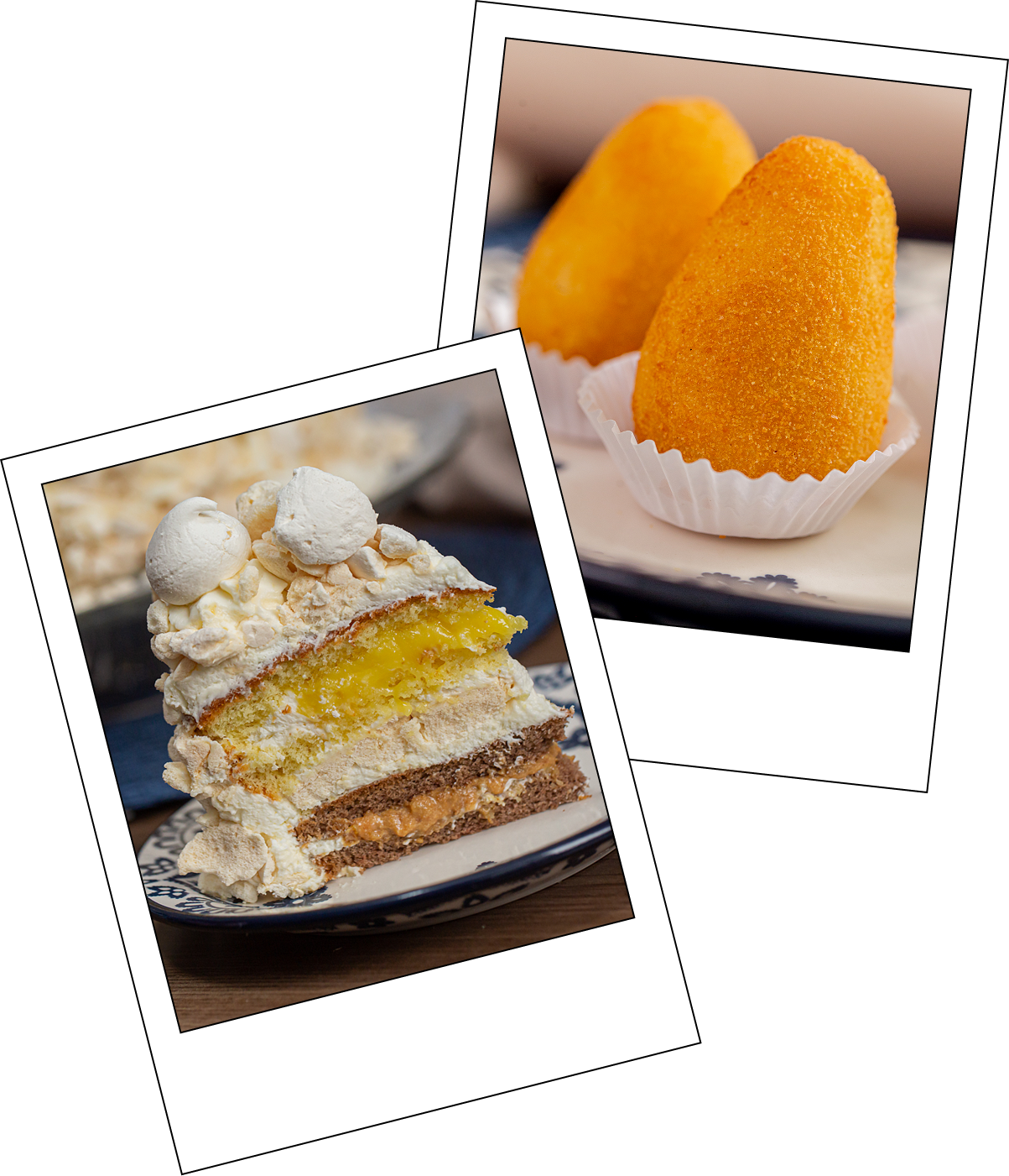 Além de ter uma das receitas do bolo Martha Rocha mais tradicionais de Curitiba e muitos outros doces no cardápio, nem só de açúcar vive a nossa confeitaria. Os salgados têm lugar bastante especial por aqui, com destaque para a nossa coxinha, premiada como uma das melhores da cidade pelo Prêmio Bom Gourmet. Elas são feitas individualmente, com uma massa feita de ingredientes especiais e secretos, e foram umas das primeiras coxinhas da cidade com recheio de camarão.